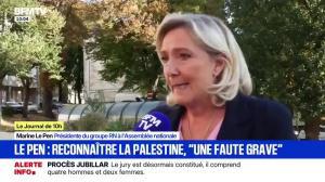 هاجمت مارين لوبان، زعيمة اليمين الفرنسي، قرار الرئيس إيمانويل ماكرون بالاعتراف بدولة فلسطينية، معتبرةً أنه "اليوم يعترف بحماستان لا بفلسطين". ورأت أن هذه الخطوة "خطأ جسيم بحق من يقاوم الإرهاب الإسلامي"، ووصفت الكيان الجديد بأنه "دولة إرهابية وُلدت من دماء ضحايا أعظم مذبحة منذ الحرب العالمية الثانية".